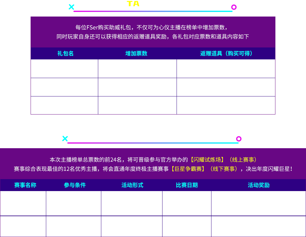 各位FSer购买助威礼包并对主播进行助威时,主播将会增加该礼包对应显示的固定票数,每个礼包仅限购买 1 次,不可重复下单。